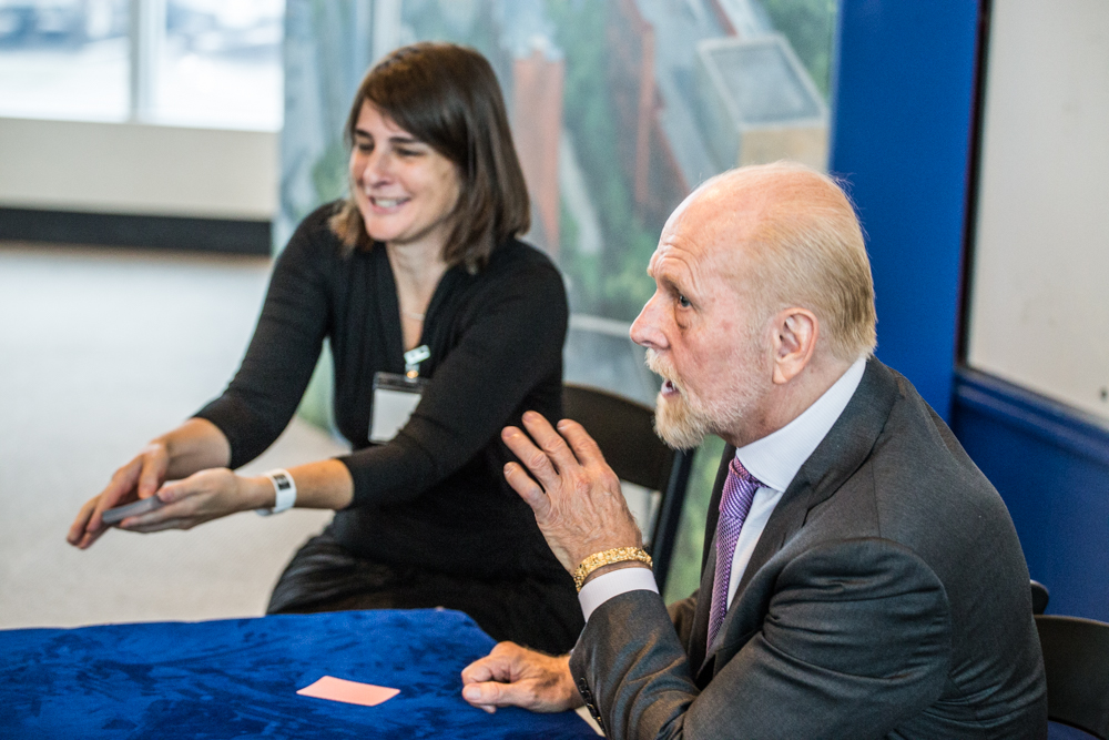 Richard Turner, acclaimed Card Mechanic who happens to be blind, wowed guests with his amazing card mastery. Displays were set up where folks could check out many of the products made by Lighthouse employees over the past several decades, along with demonstrations of assistive technology used by our Contact Center Representatives and Machine Operators who are blind. Seventeen fabulous silent auction packages, a fun raffle for coveted Seahawks tickets, and the sale of our Centennial wine lent to the excitement before guests sat down to dinner.