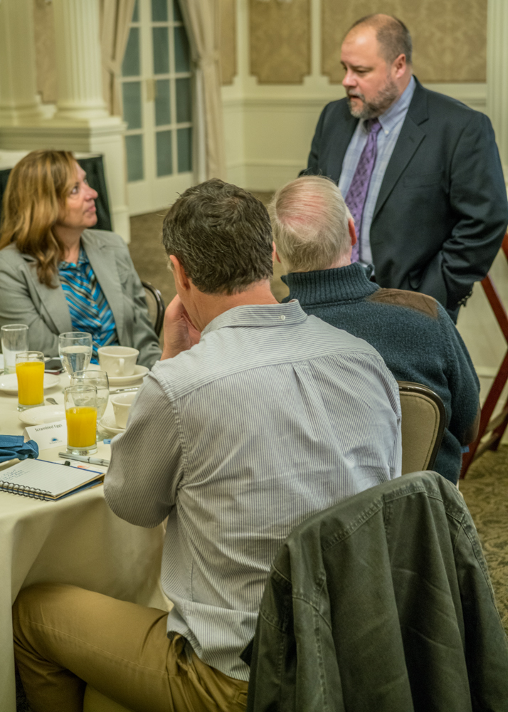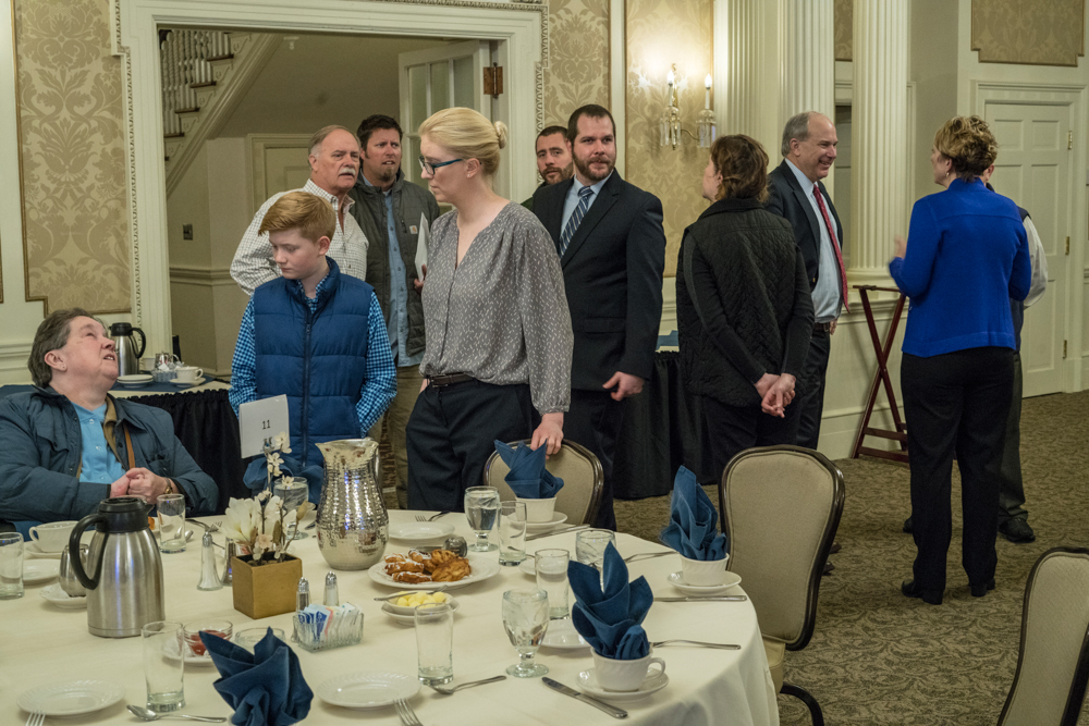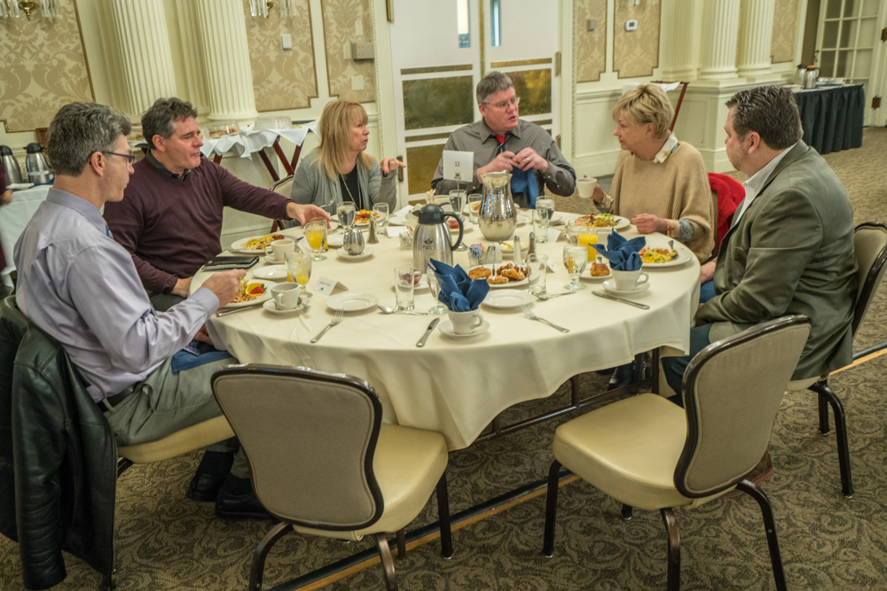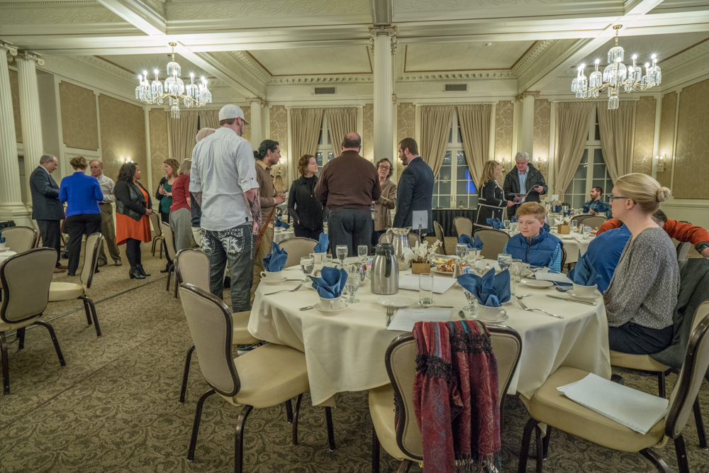 - Guests arriving and greeting each other at the Decade of Opportunities Breakfast