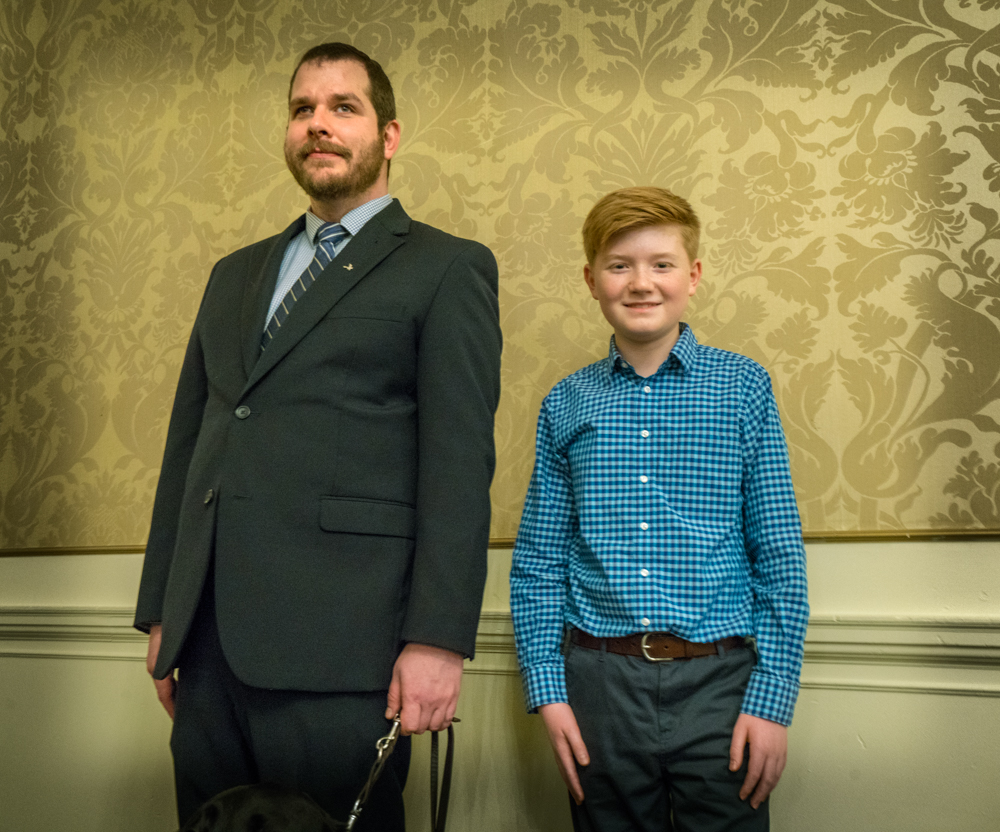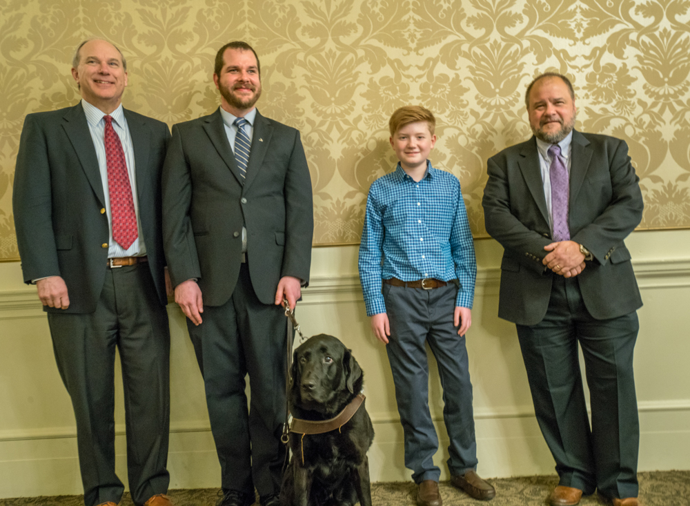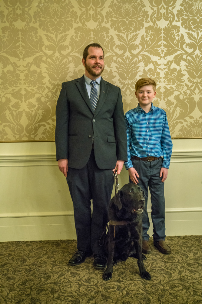 - Greg Szabo, his guide dog Finn, and Alex Knoll